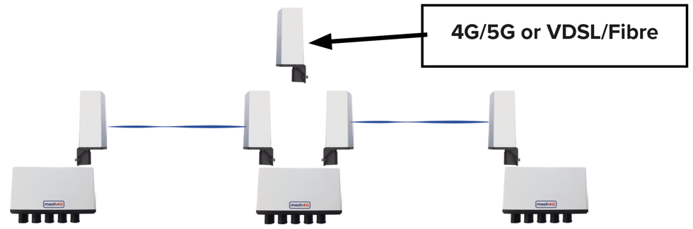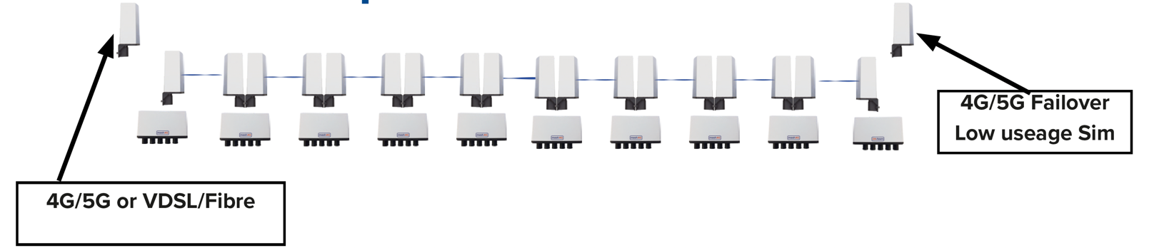 The Mesh radios in the diagram have a single back-haul and a fail-over 4G connection, which only uses data when a link fails in the mesh and cannot be auto-corrected without the failover.